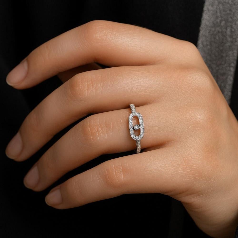 • خاتم أنيق بتصميم هندسي مرصع بالفصوص البراقة.